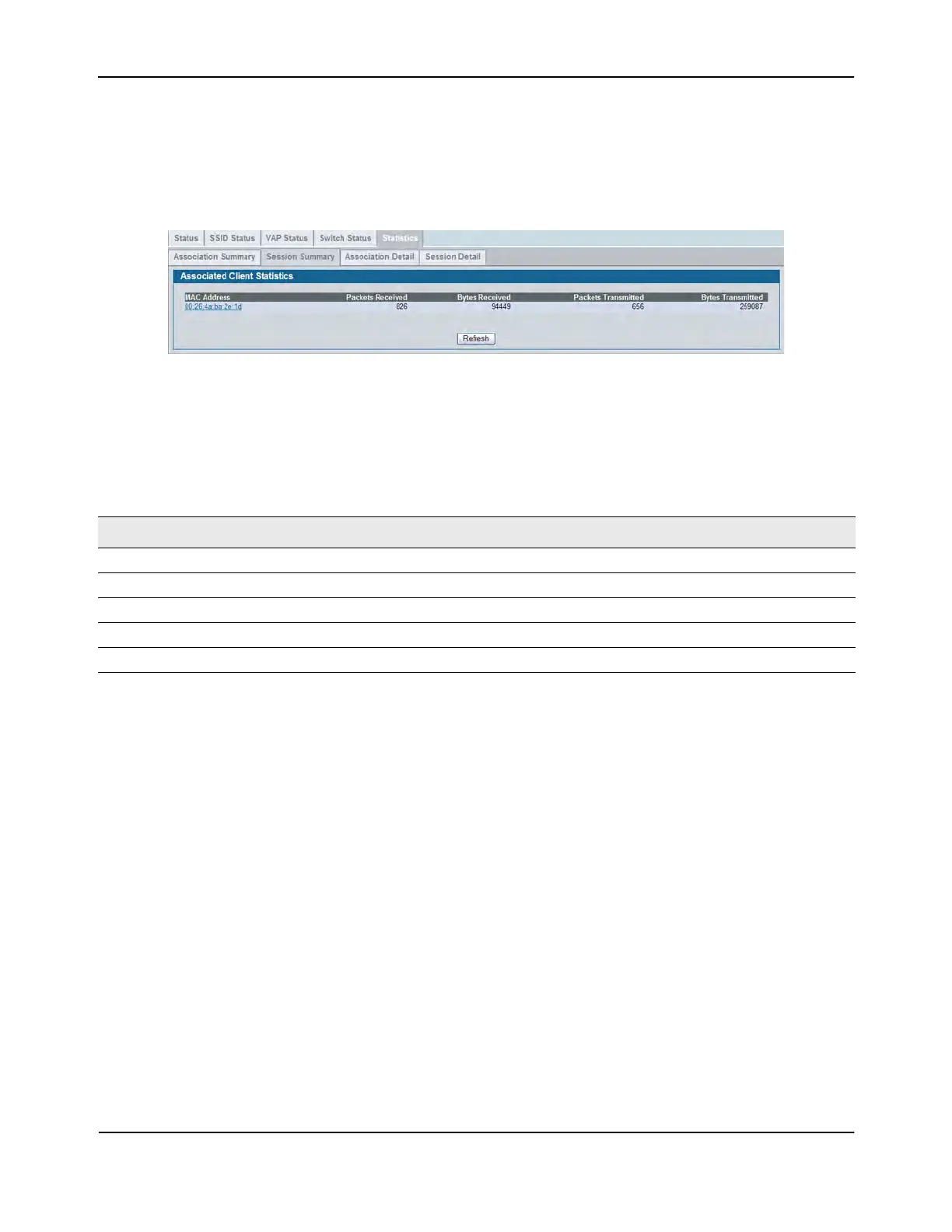 The statistics on the WLAN > Monitoring > Client > Associated Clients > Statistics > Session Summary page