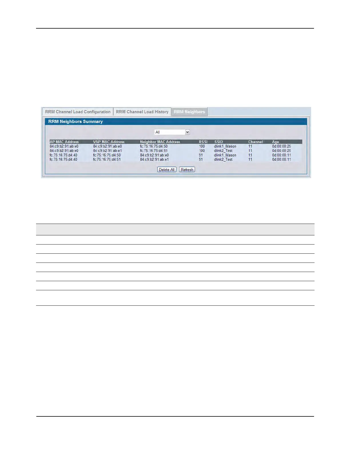 Neighbor MAC Address The MAC address of the detected neighbor VAP.