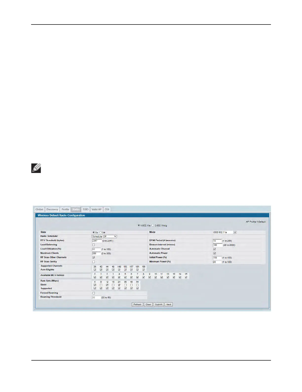 You configure the default radio settings from the WLAN > Basic Setup > Radio tab, which the following figure