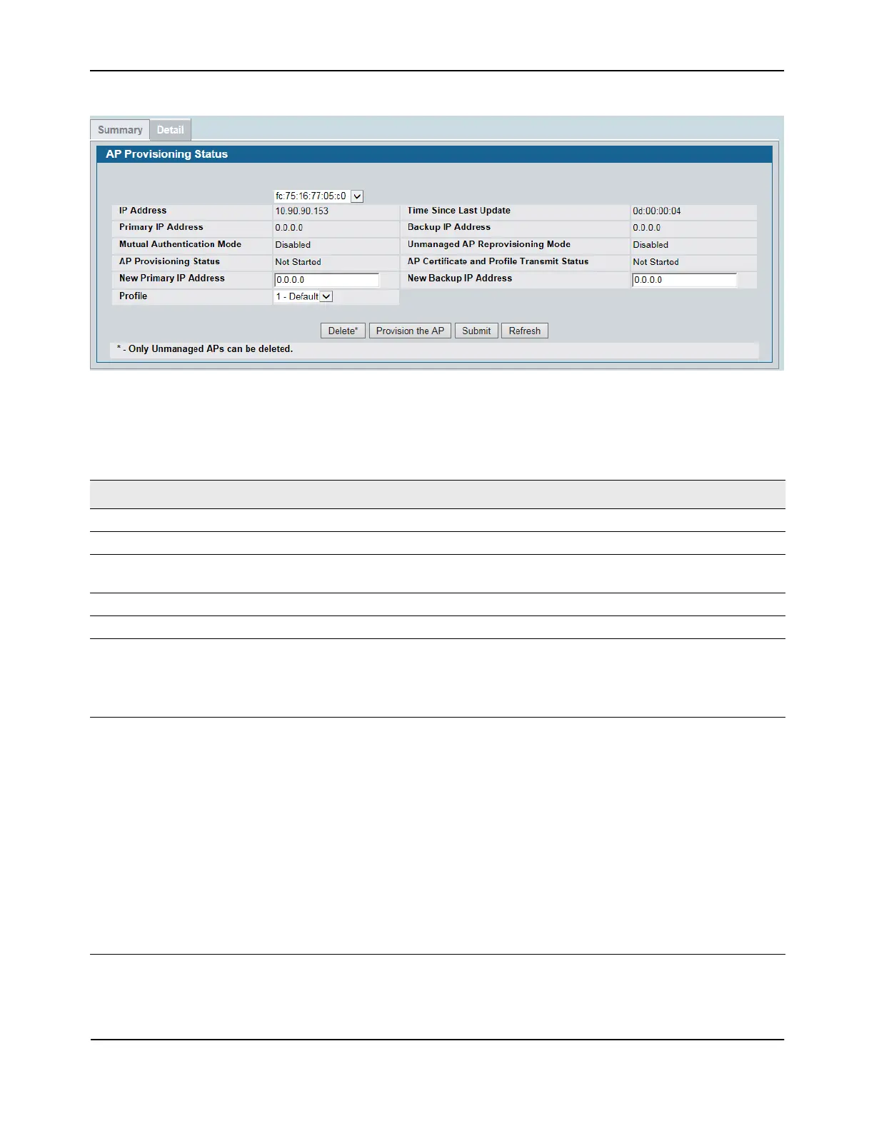 Unmanaged AP Reprovisioning Mode The configured re-provisioning mode in the AP, which is one of the