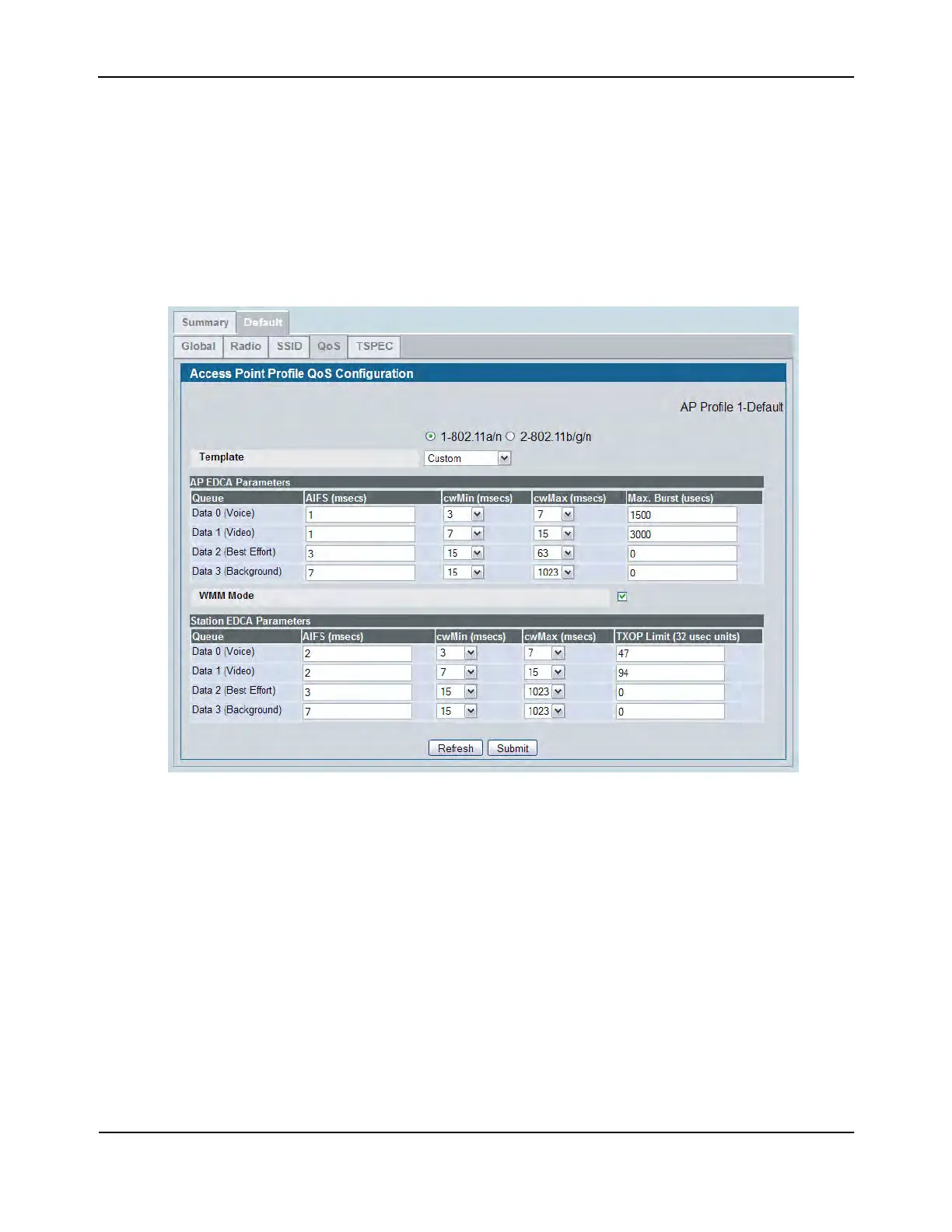 You can specify custom QoS settings, or you can select a template that configures the AP profile with pre-