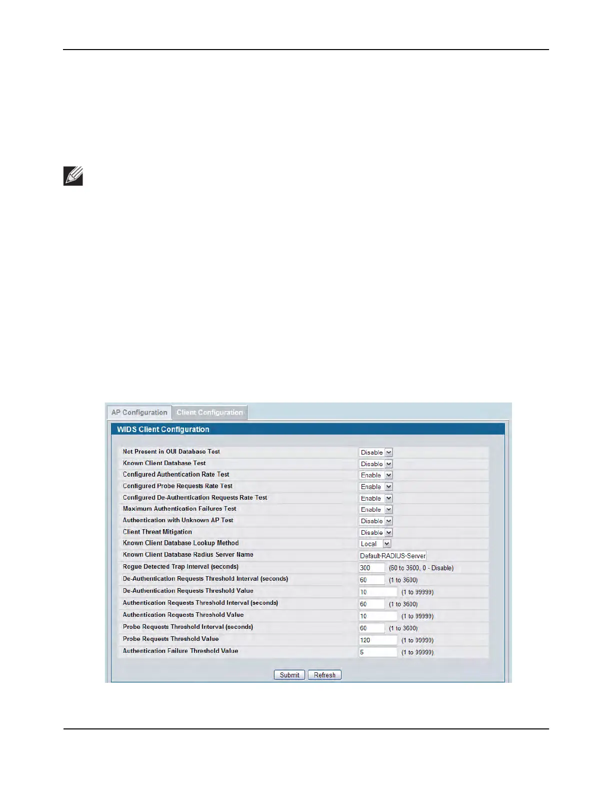 WIDS Client Configuration page help determine whether a detected client is classified as a rogue. Clients