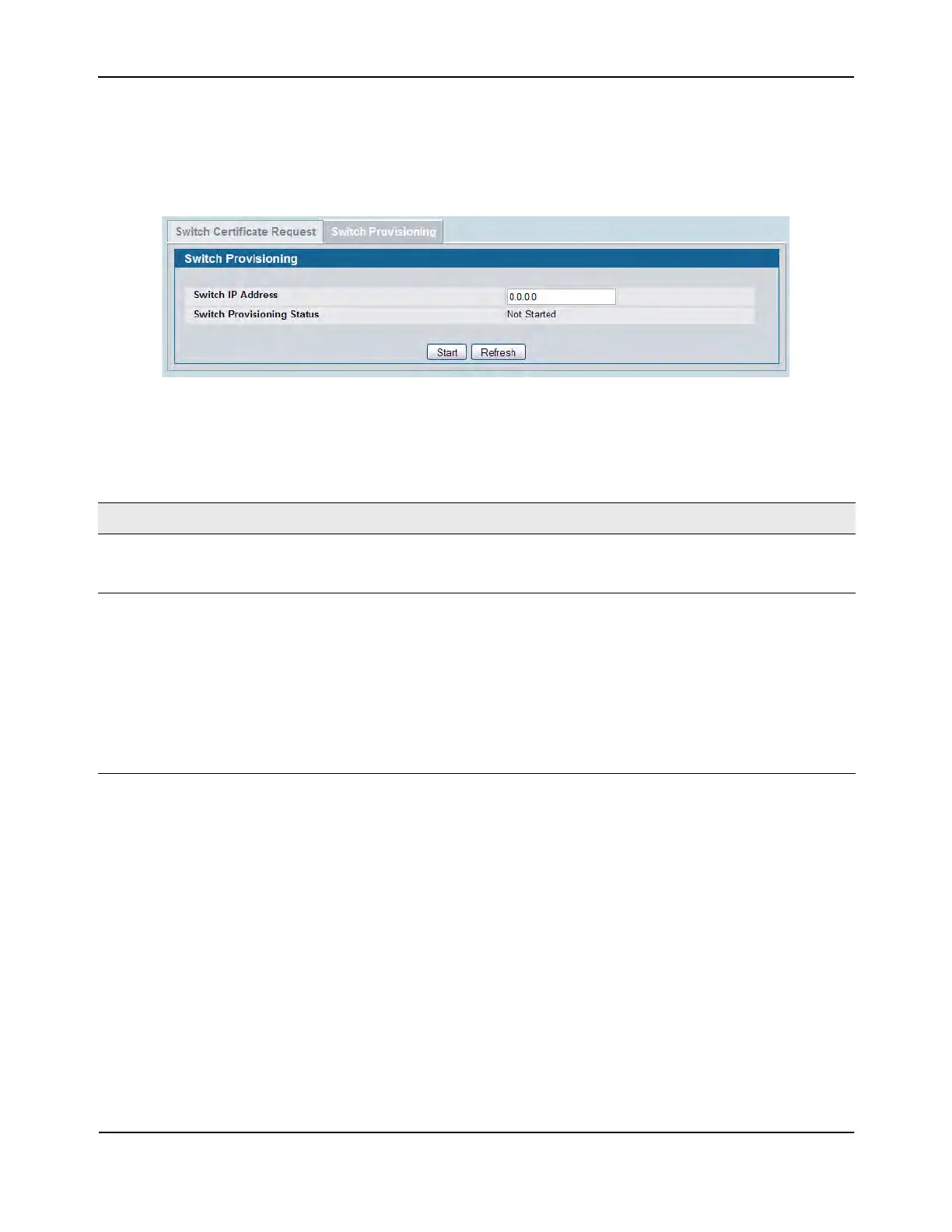 • Start—Initiates the provisioning request for the switch.