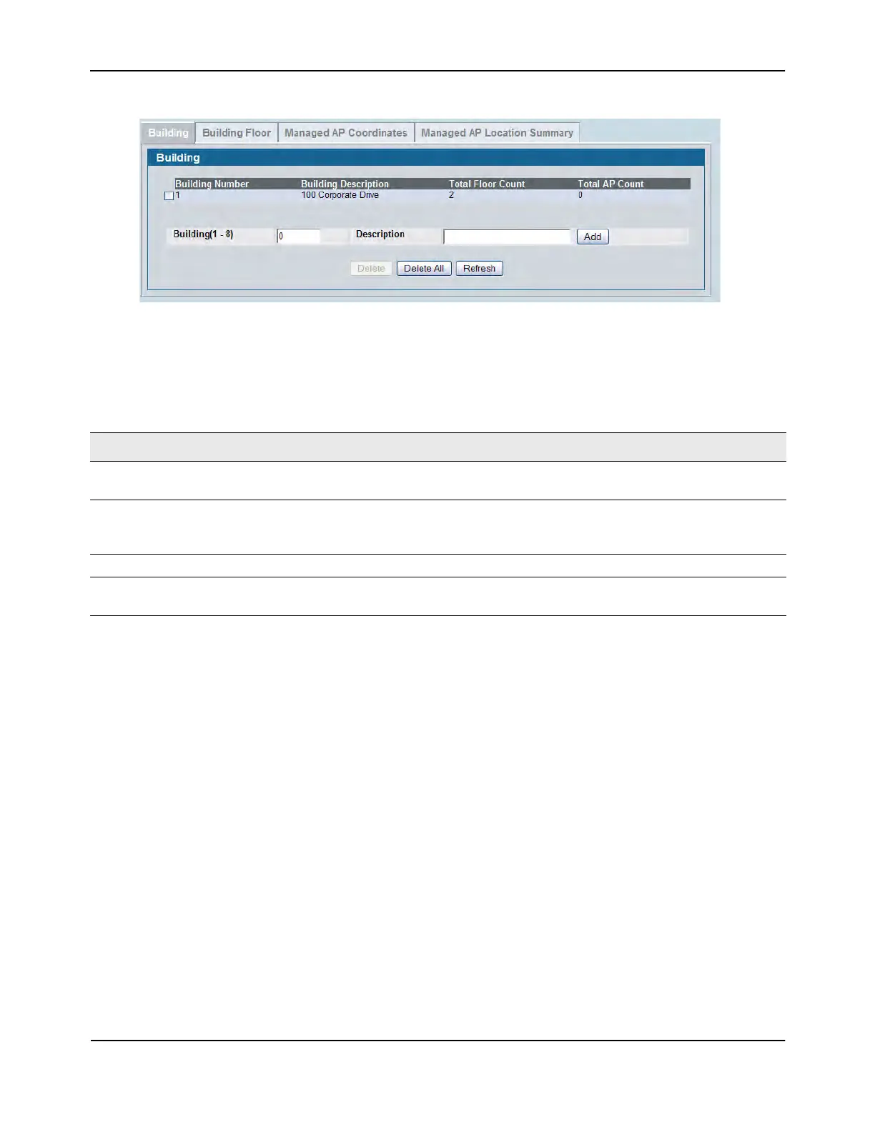 Delete All—Deletes all buildings configured in the database.