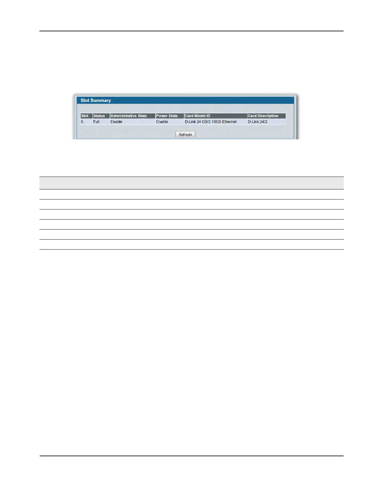 To access the Slot Summary page, click LAN > Monitoring > Slot Summary in the navigation tree.