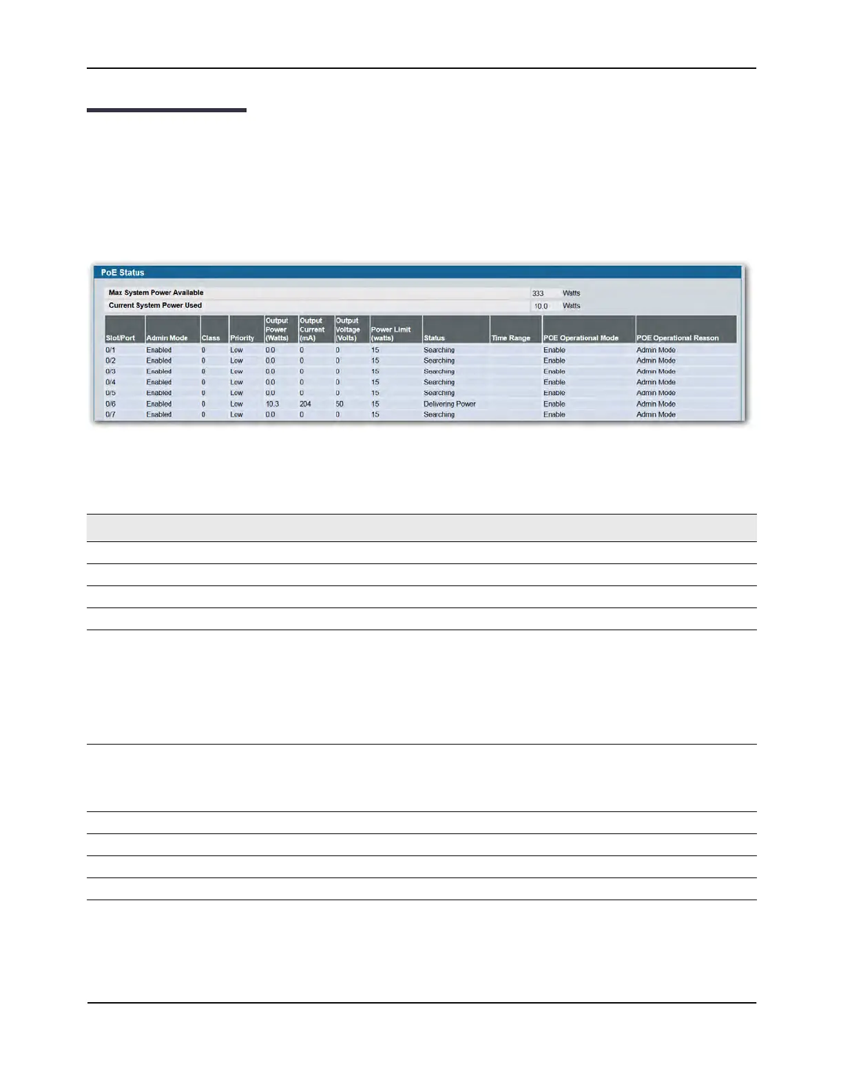 To display the PoE status, click LAN > Monitoring PoE Status page in the navigation tree.