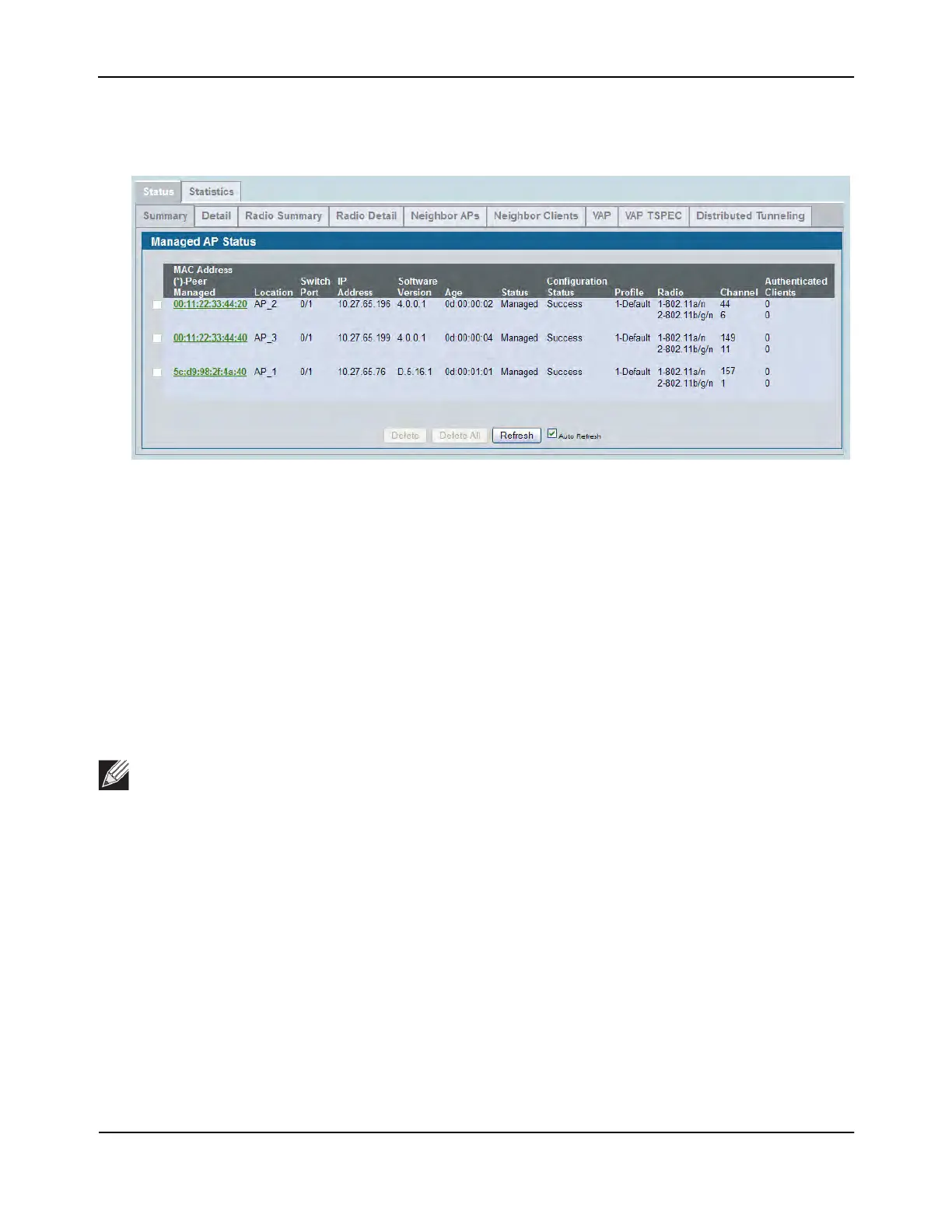 6. To view the operating channel for AP_3 and all managed APs, go to the WLAN > Monitoring > Access Point