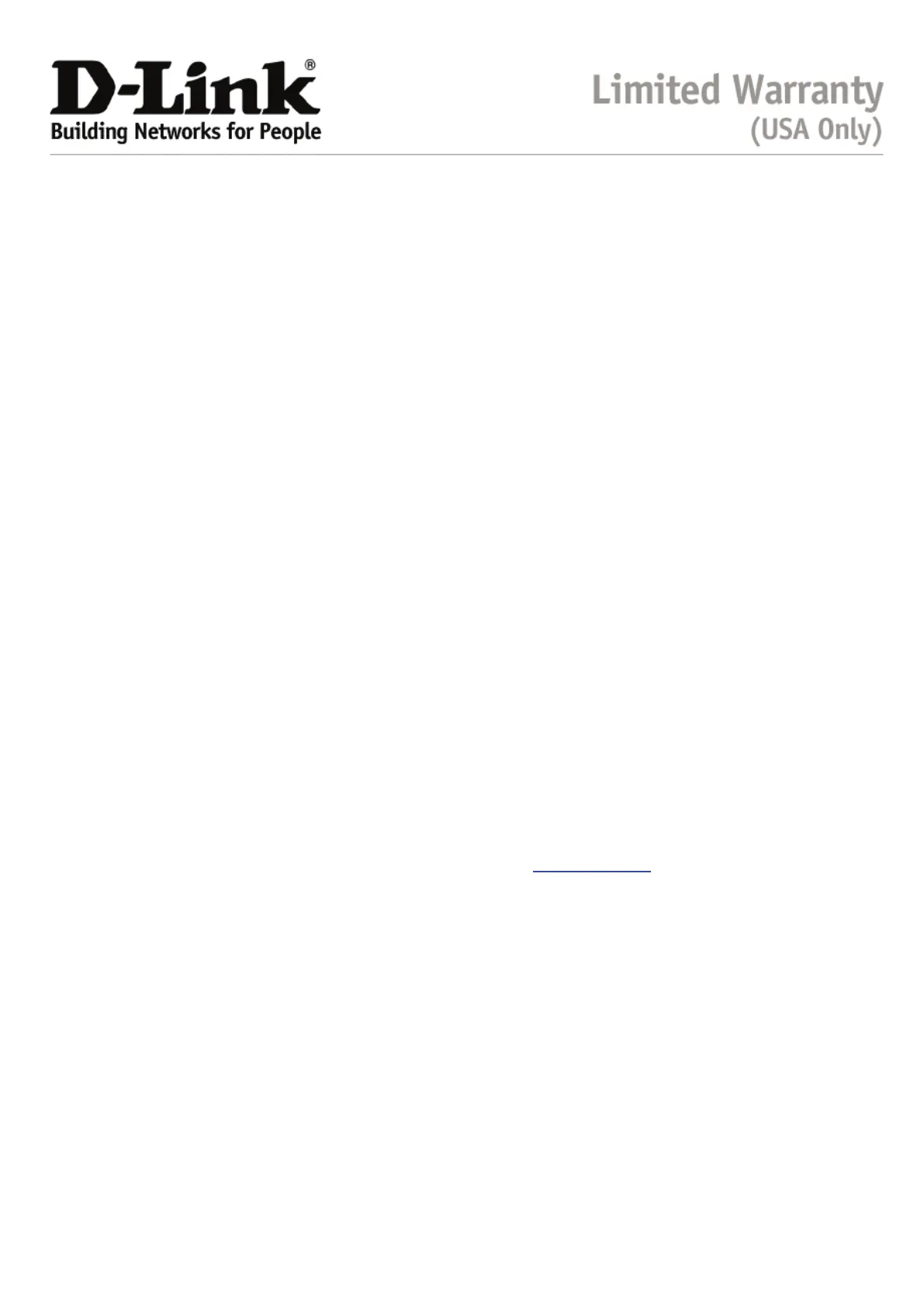 Limited Warranty: D-Link warrants that the hardware portion of the D-Link product described below (“Hardware”) will be free from material defects in
