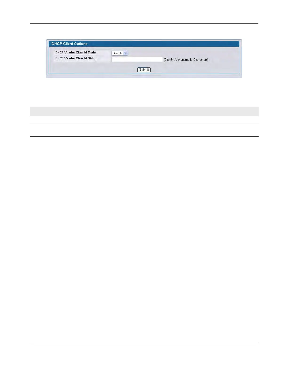 DHCP Vendor Class ID Mode Specify whether to enable or disable the vendor class identifier mode.