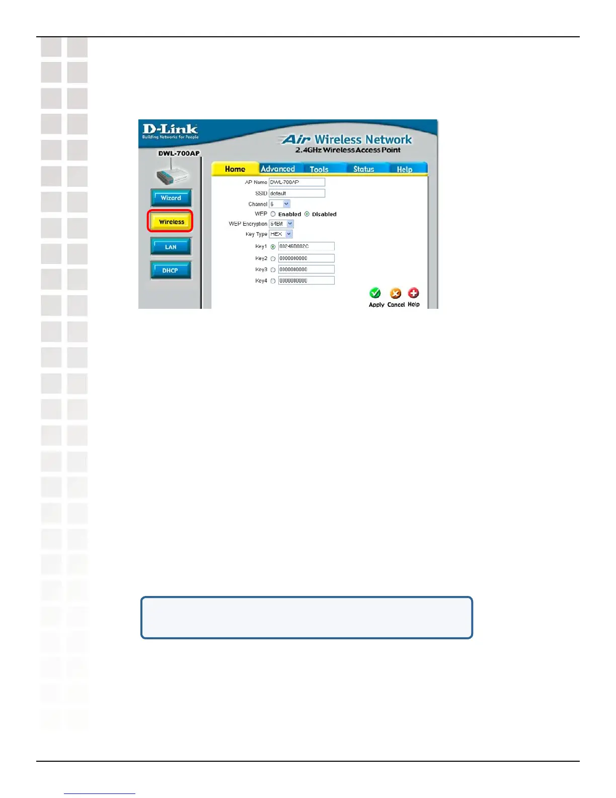 WEP selection – either Enable or Disable, and they must share the same WEP key.