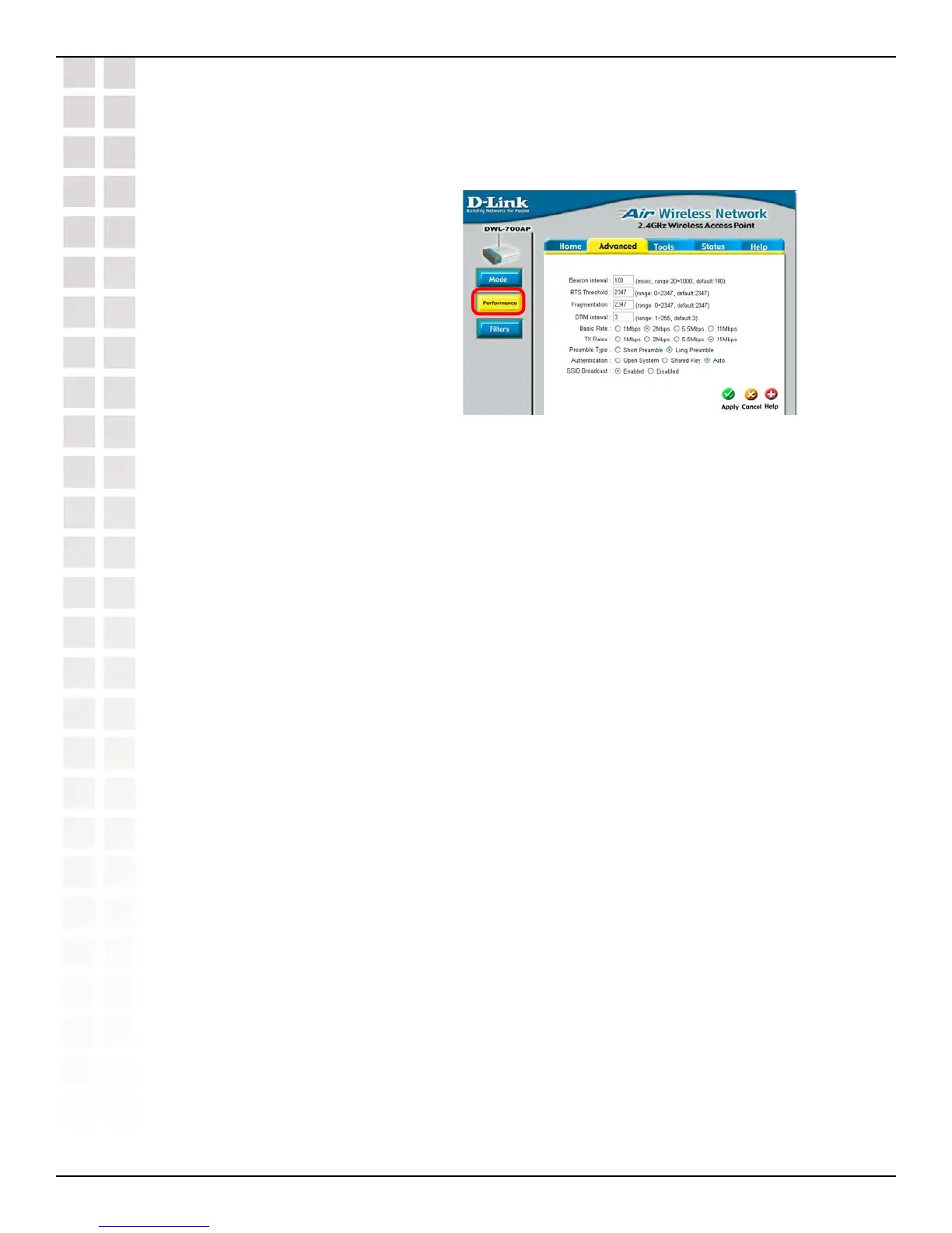 TX Rates: Select the transmission rate for the network. The default rate is 11Mbps.