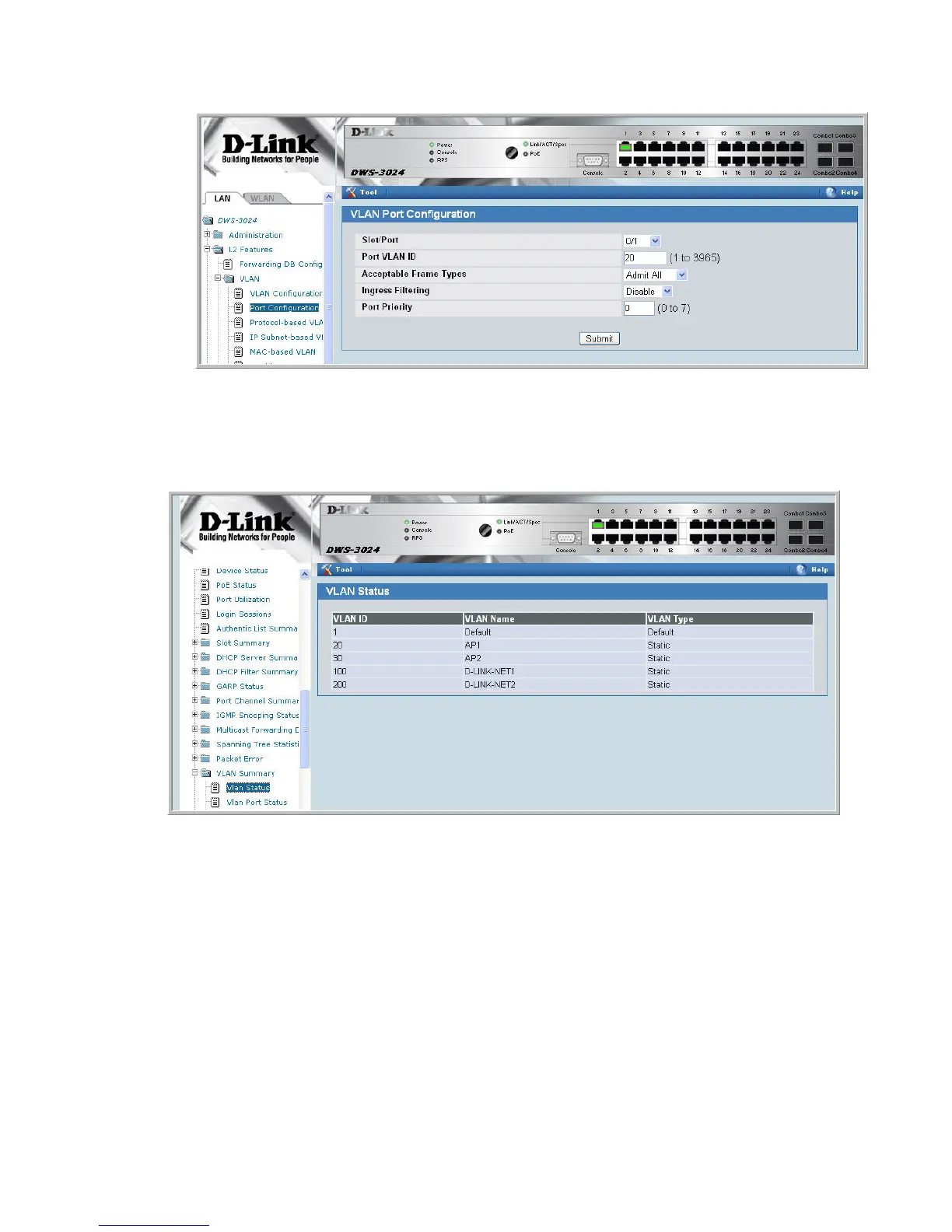 SummaryÆ VLAN Status and VLAN Port Status pages to verify that the VLANs and the