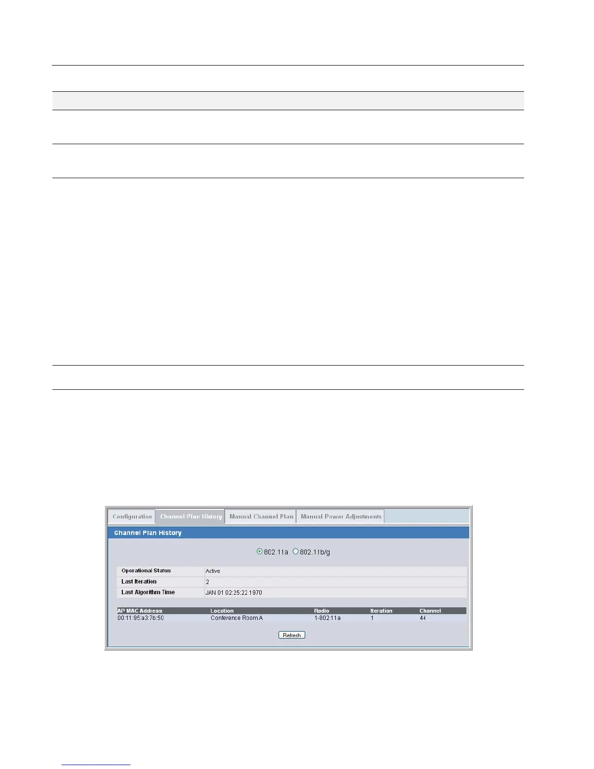 History information, click the AP Management > RF Management > Channel Plan History tab.