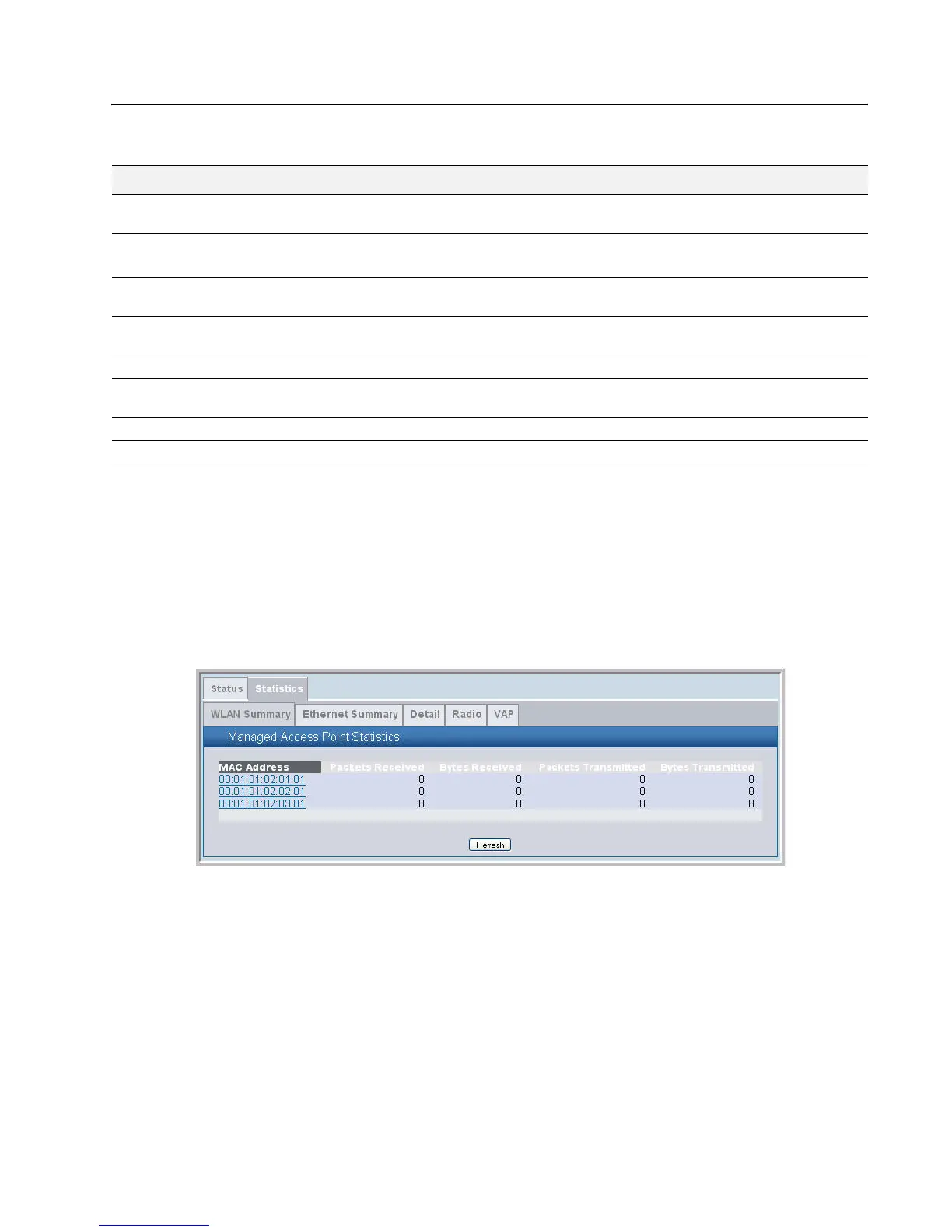 Shows the MAC address and location of the AP to which the values on the page apply. To