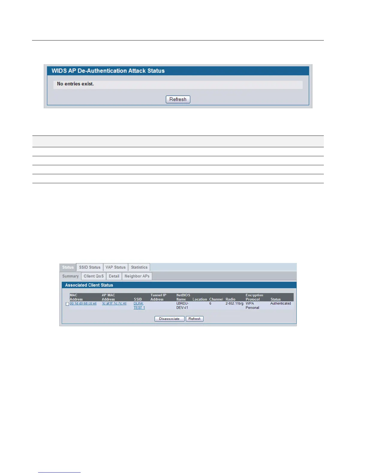 Table 44: AP De-Authentication Attack Status