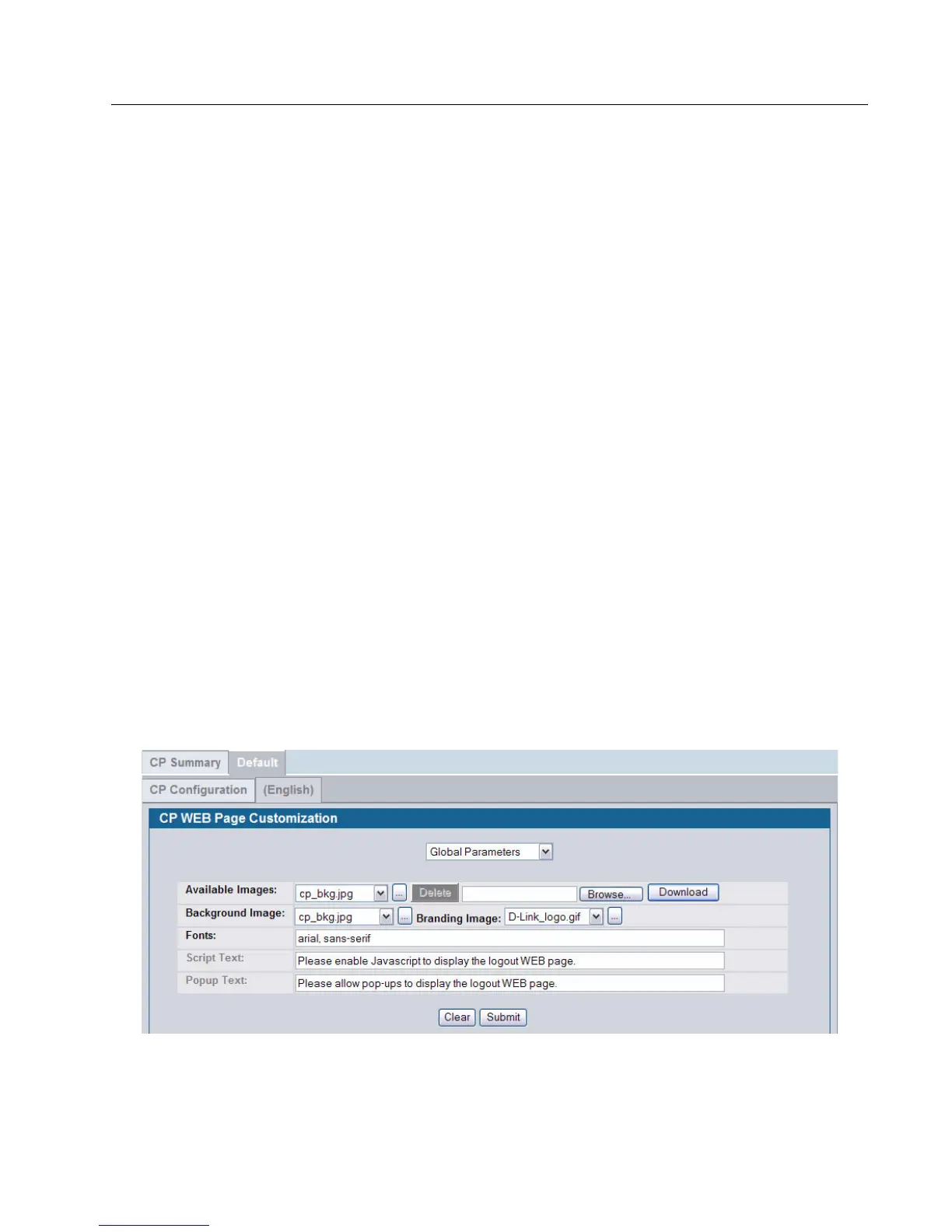 To customize the page that wired and wireless clients see when they access the captive portal, click the tab that corresponds