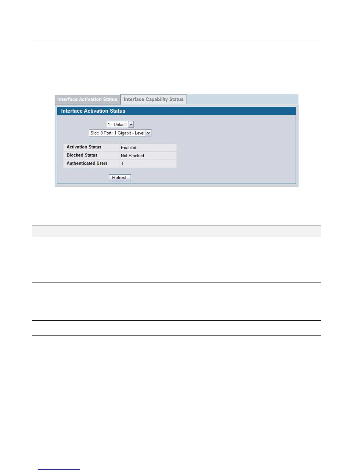 The Interface Activation Status page shows information for every interface assigned to a captive portal instance. Use the