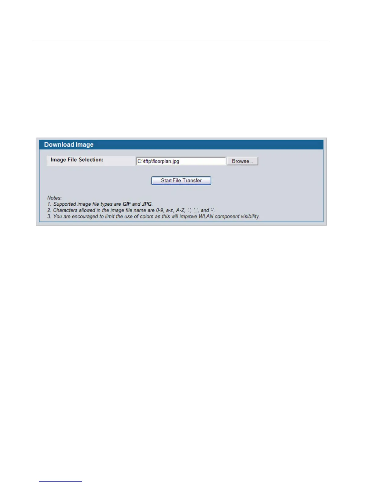 To load an image onto the switch to use as a background for the WLAN Visualization graph, use the following procedures: