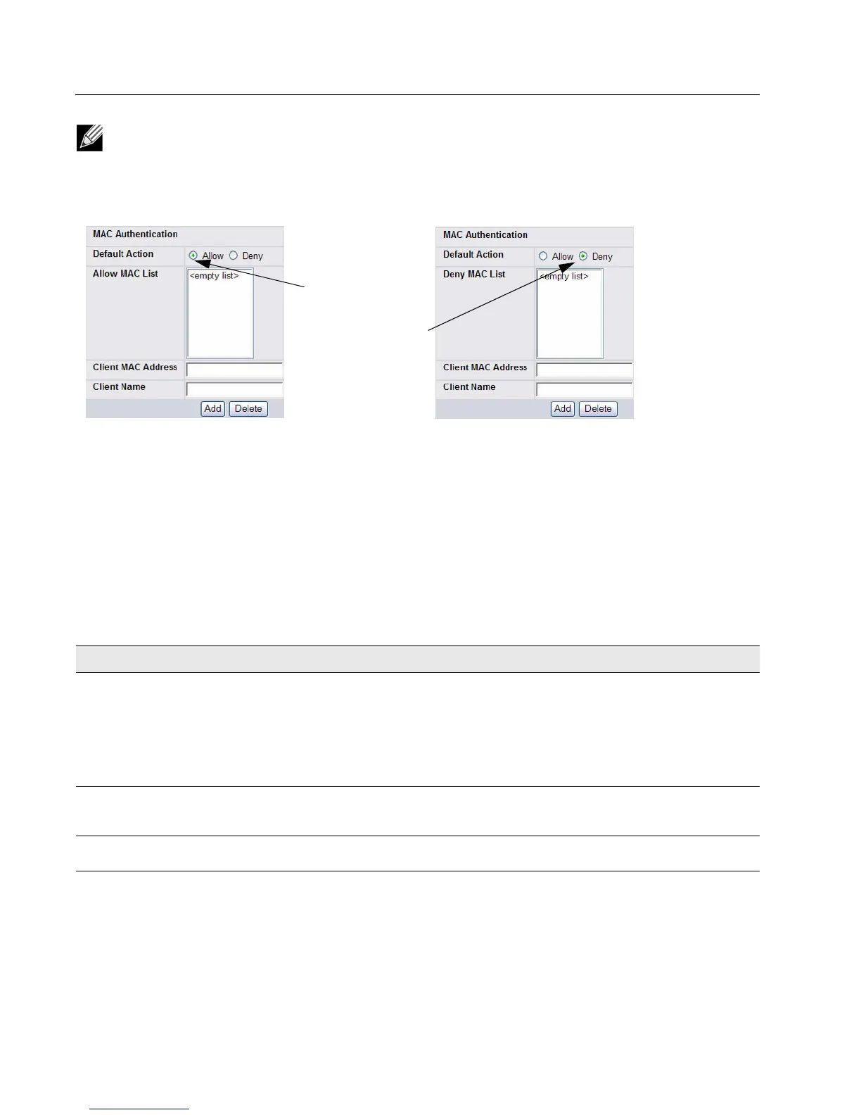Allow MAC List This list shows the MAC address of the wireless clients that have