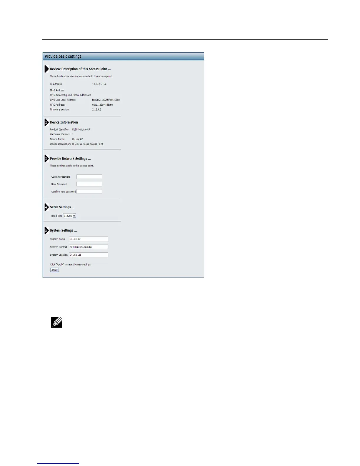 • Review access point description and provide a new administrator password for the access point if you do not want to
