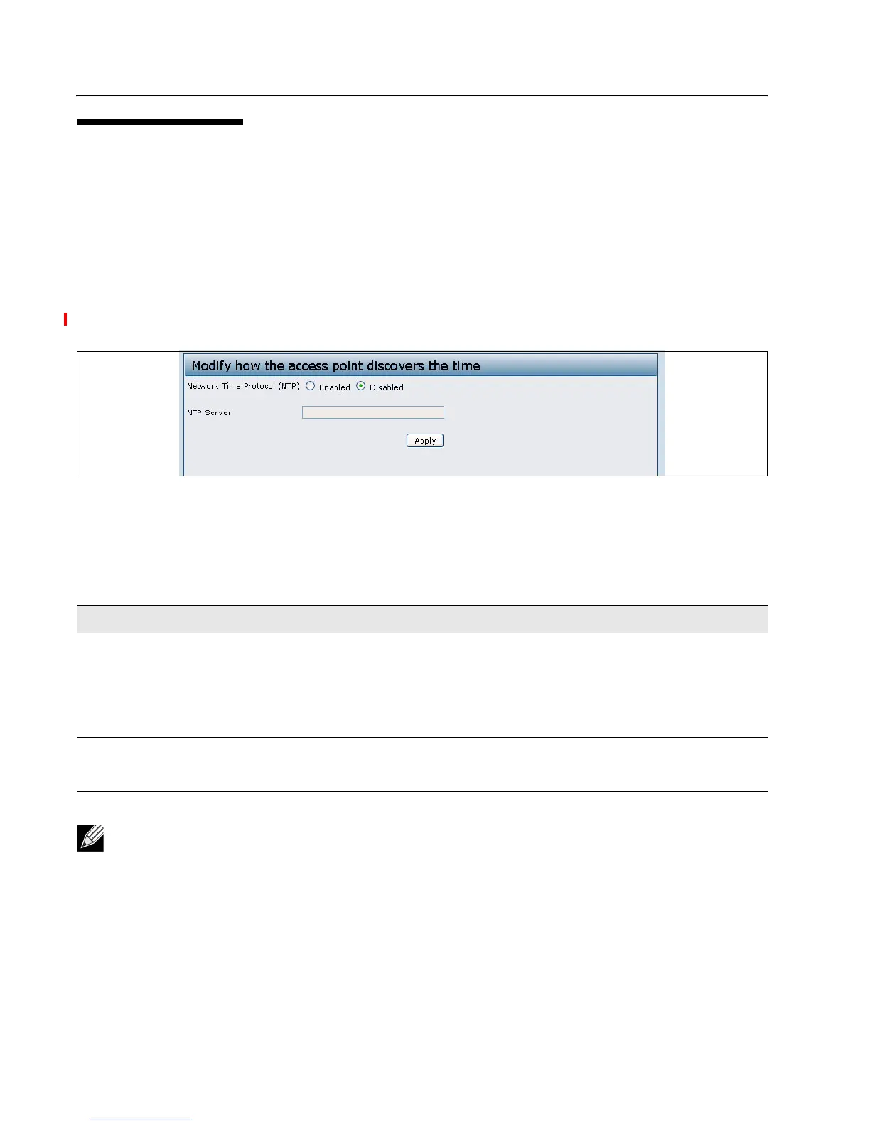 Network Time Protocol (NTP) NTP provides a way for the AP to obtain and maintain its time from a server on the