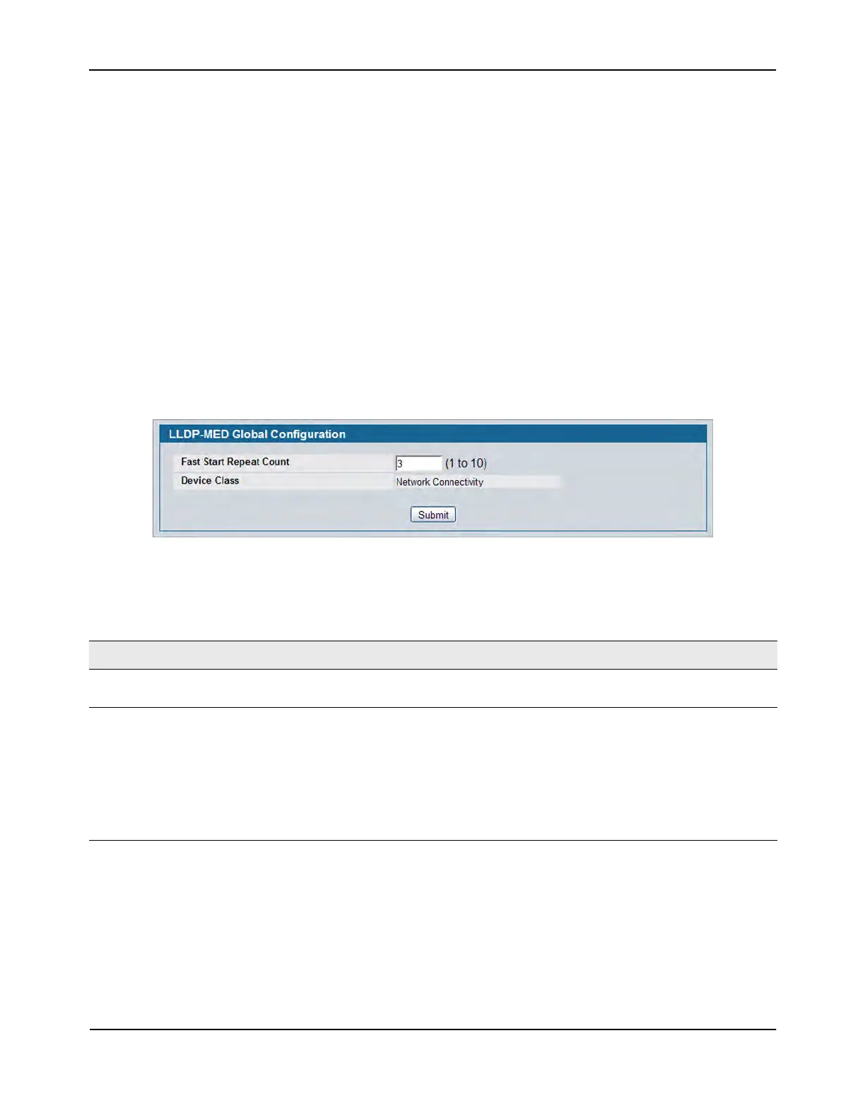 Fast Start Repeat Count Specifies the number of LLDP PDUs that will be transmitted when the protocol is