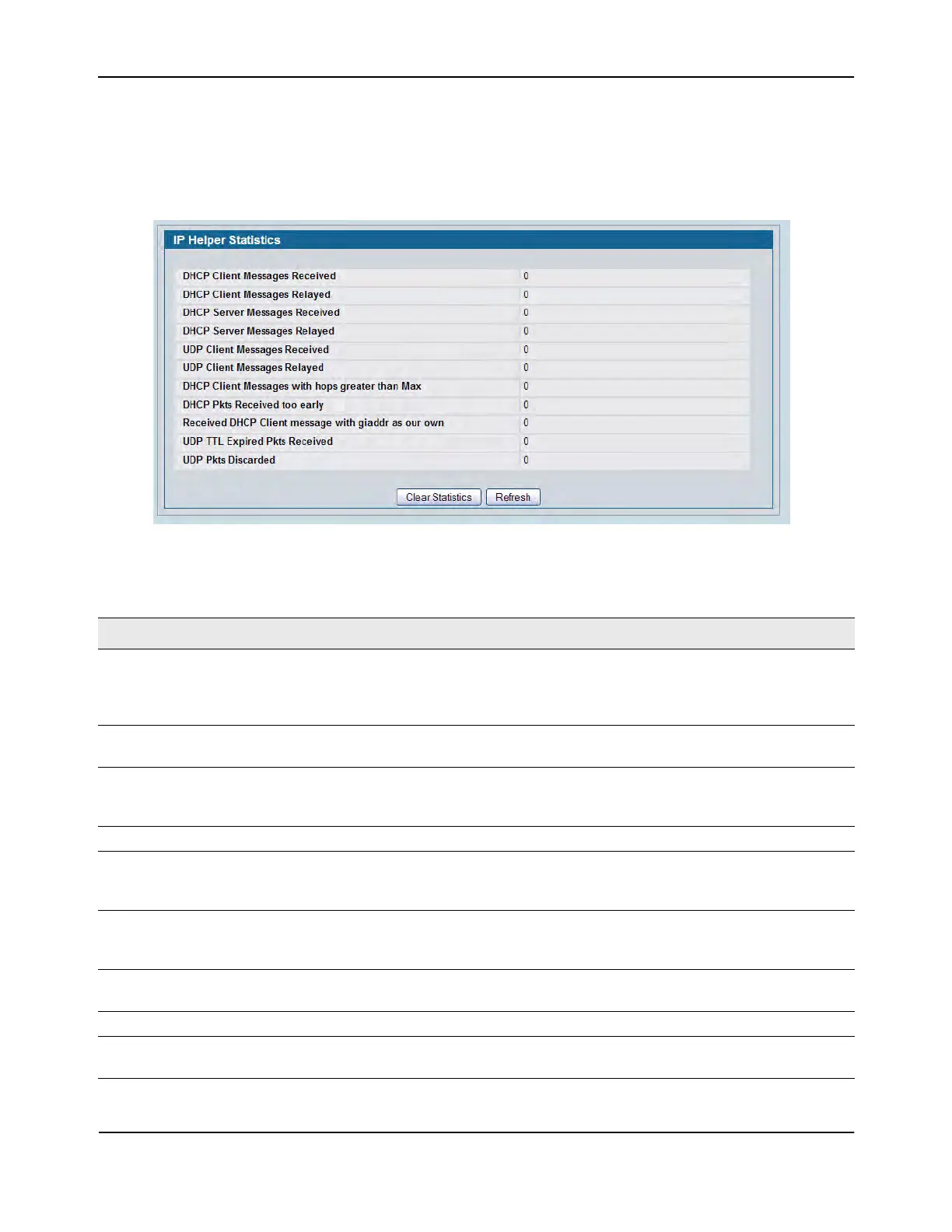 Use the IP Helper – Helper Statistics page to view IP Helper statistics. To display the page, click LAN > L3