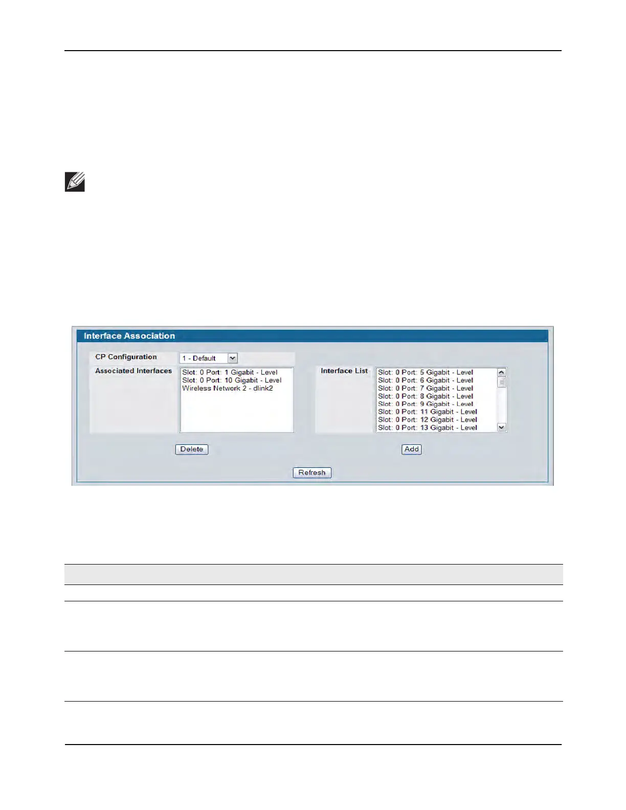 Interface List Lists the interfaces available on the switch that are not currently associated with a CP.