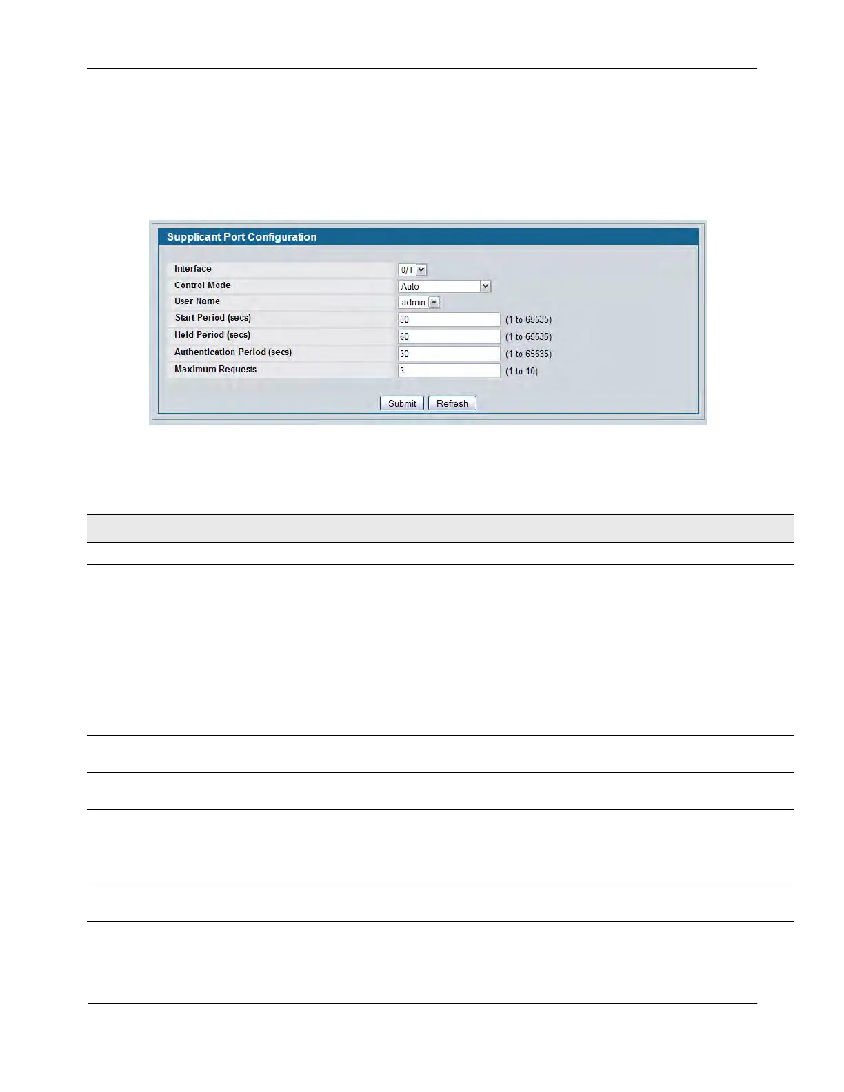 Click Submit to configure the supplicant. Click Refresh to display the page with the latest data from the switch.