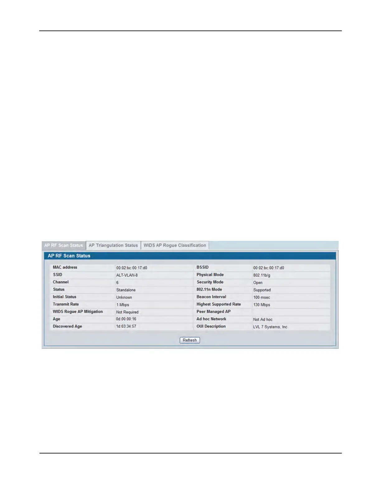 the main Rogue/RF Scan page and click the MAC address of the AP with the information to view.