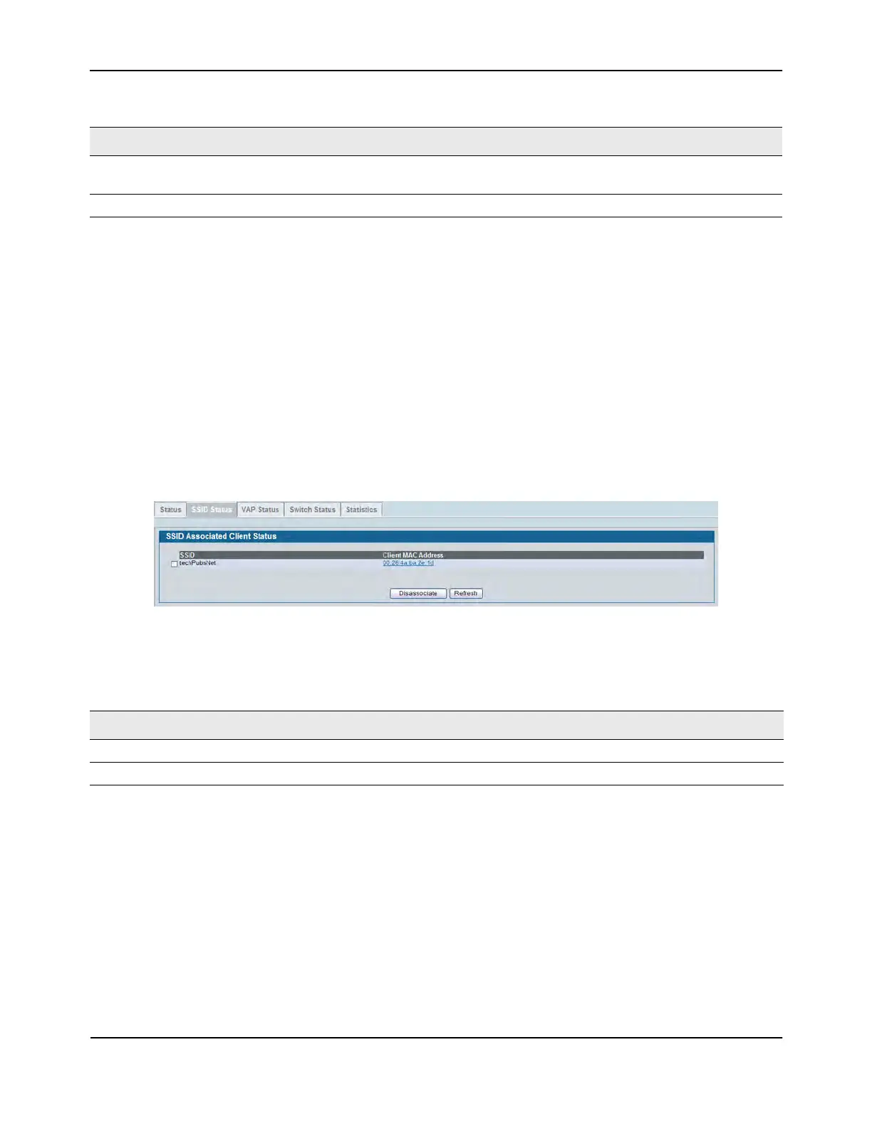 To disconnect a client from an AP, select the box next to the SSID, and then click Disassociate.