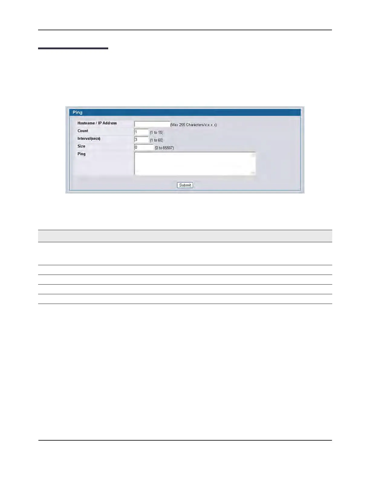 Use the Ping page to tell the switch to send a Ping request to a specified IP address. You can use this feature