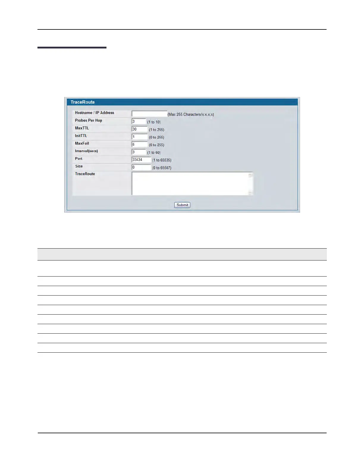 Click Submit to initiate the traceroute. The results display in the TraceRoute box.