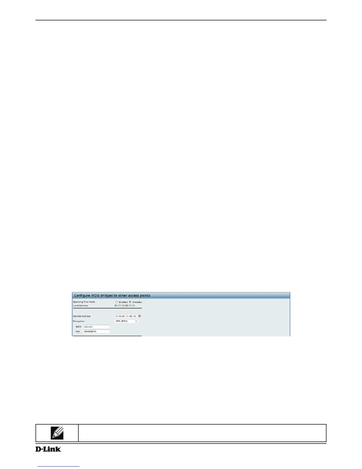 The WDS link has the following settings, which must be conîšżgured on both APs: