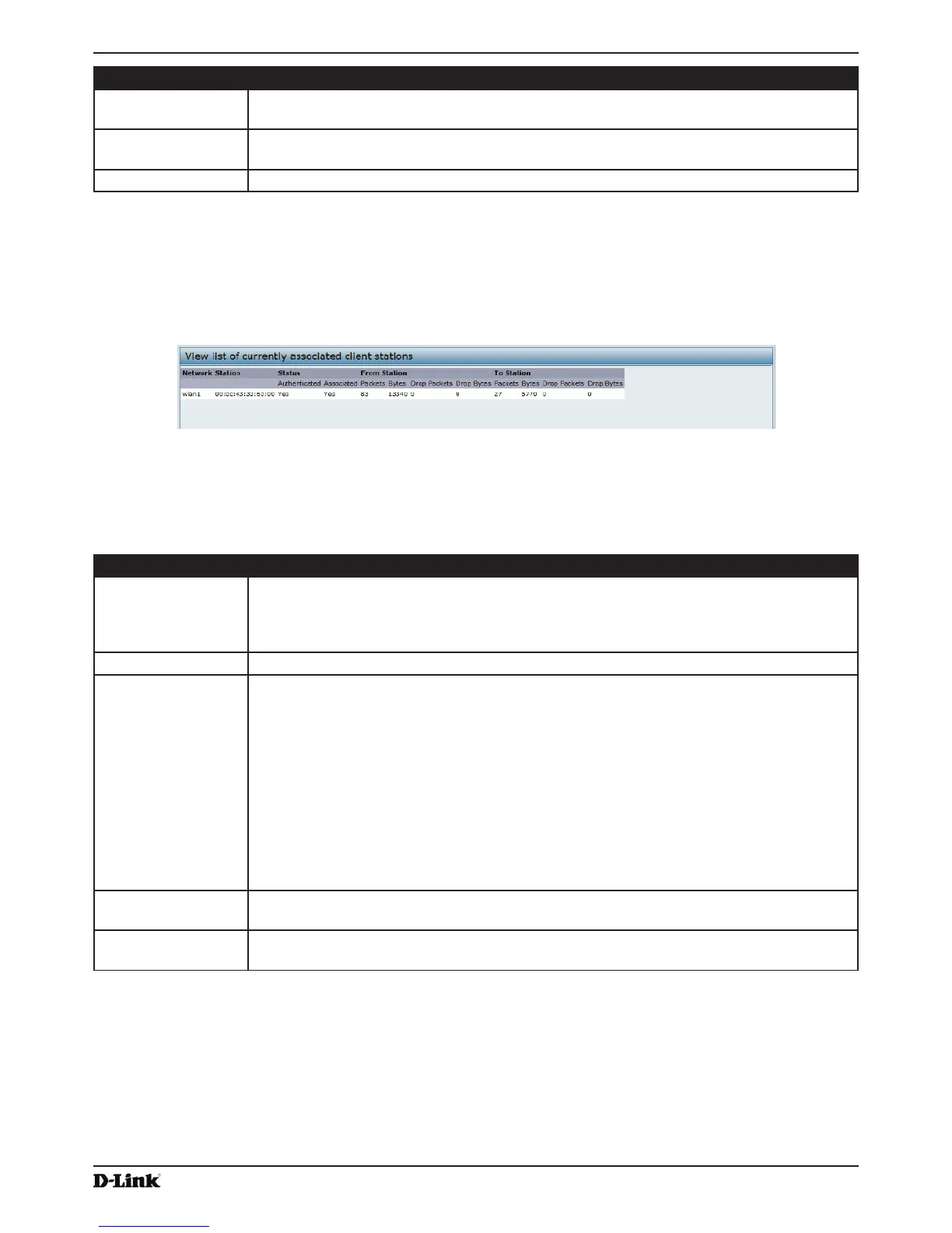 Station Shows the MAC address of the associated wireless client.
