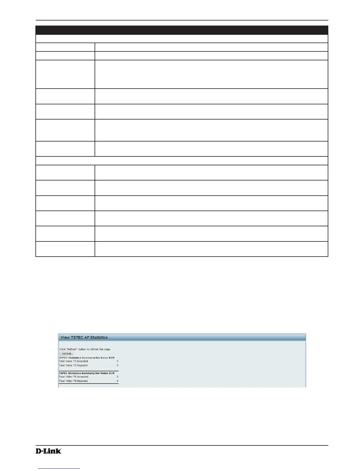 The View TSPEC AP Statistics page provides information on the voice and video Trafîšżc Streams accepted and
