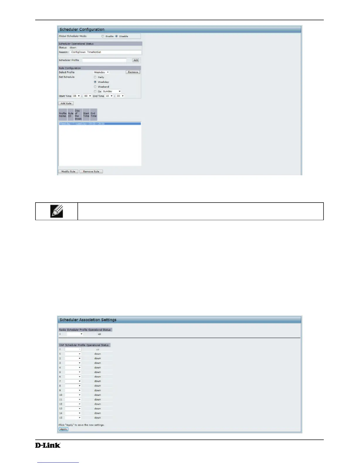 to a radio or VAP conîšżguration. Only one Scheduler proîšżle can be associated to any radio or VAP conîšżguration;
