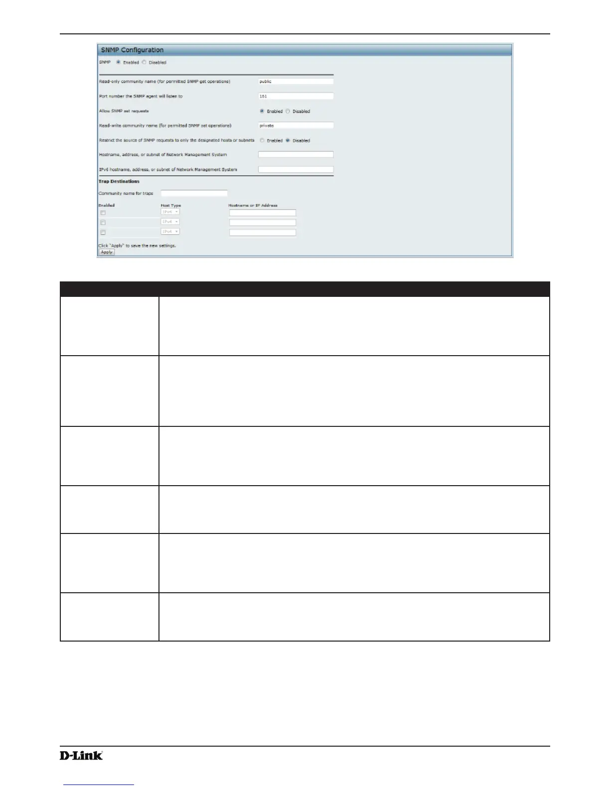 the SNMP agent on the AP to the D-Link System MIB. To enable SNMP set requests, click