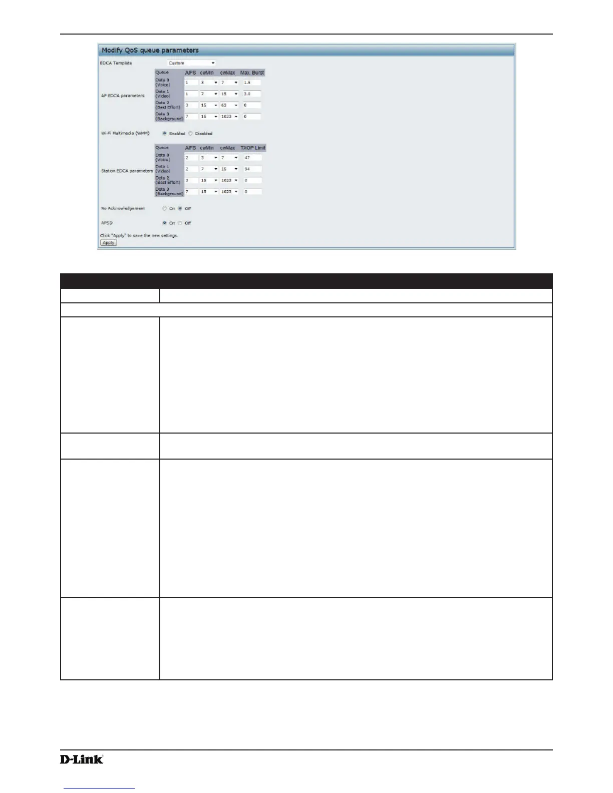 EDCA Template Possible options are: Default, Optimized for Voice, and Custom.