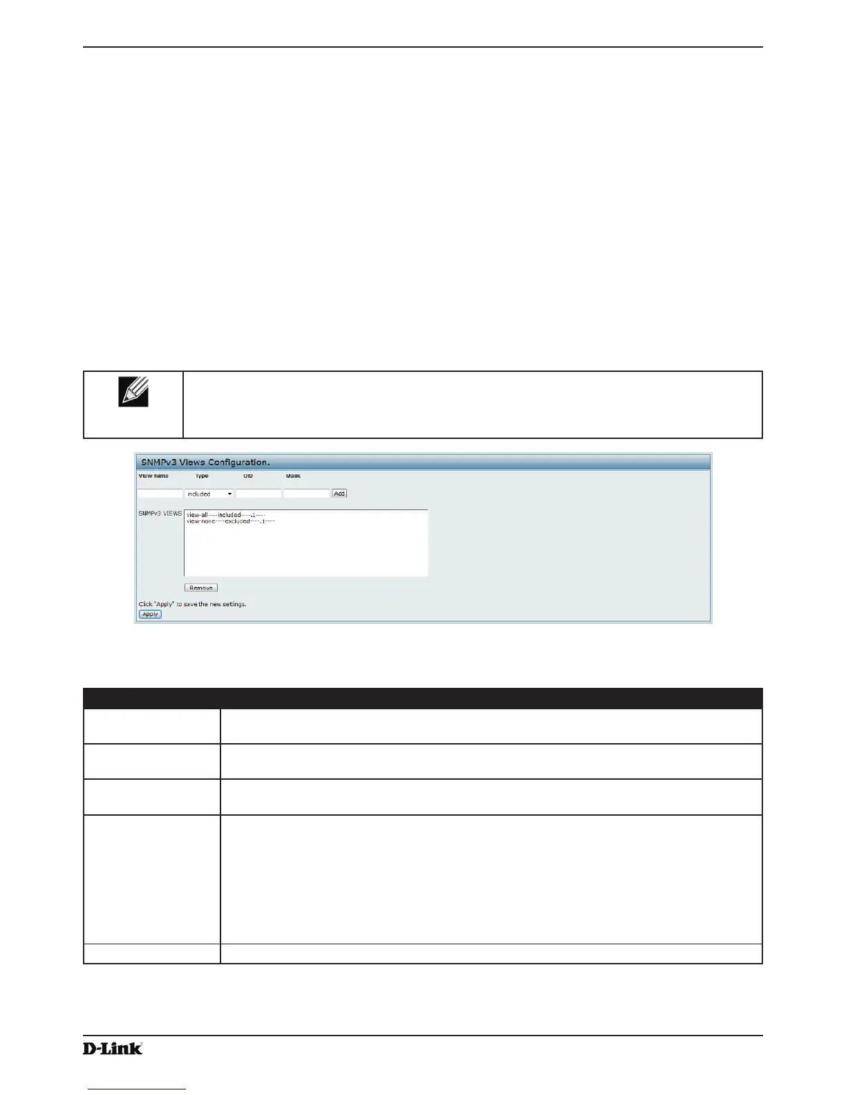 The following table describes the îšżelds you can conîšżgure on the SNMPv3 Views page.