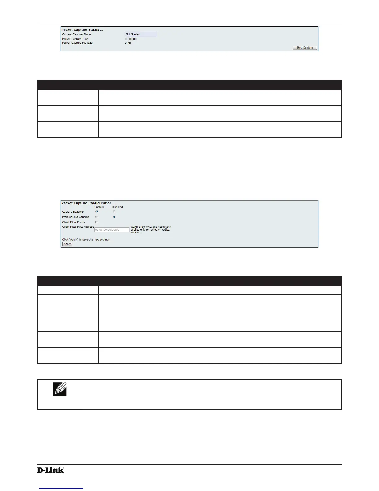 Packet Capture Conîšżguration allows you to conîšżgure parameters that affect how packet capture functions on the radio