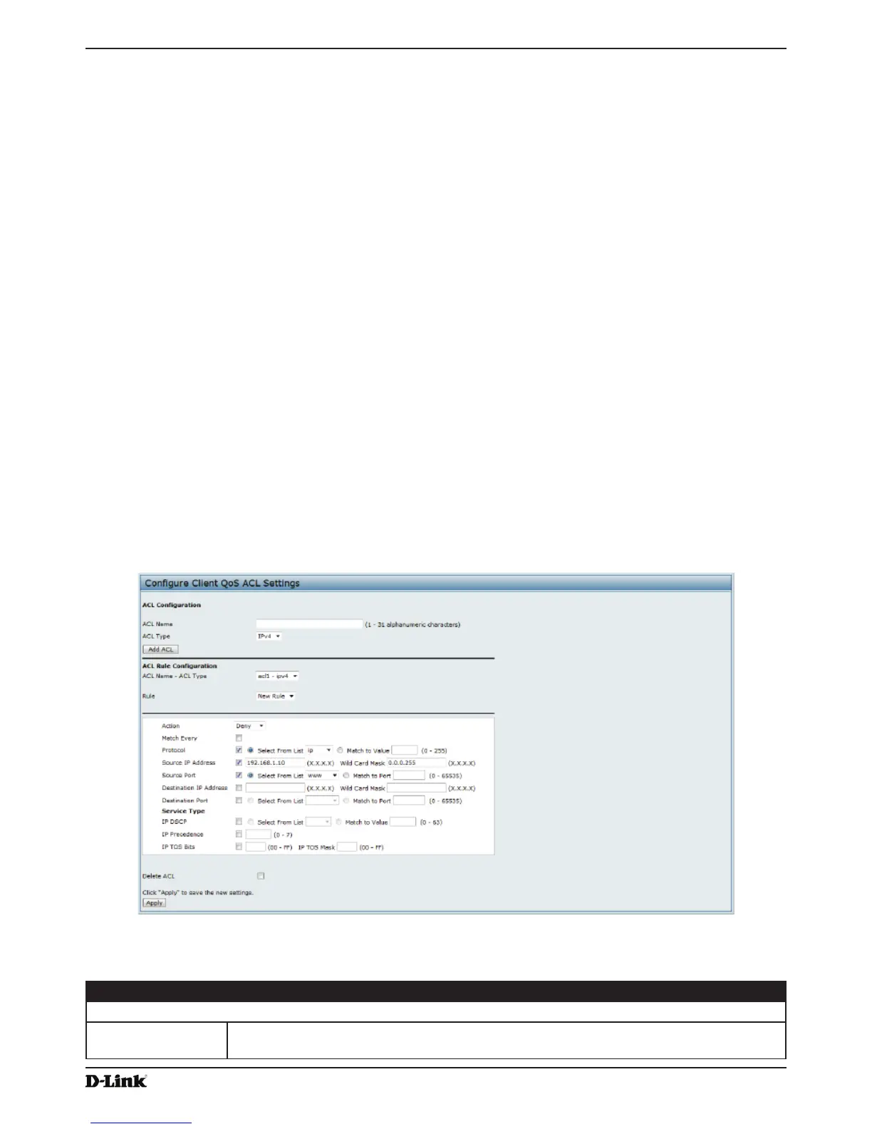 To conîšżgure an ACL, click the Client QoS ACL tab.