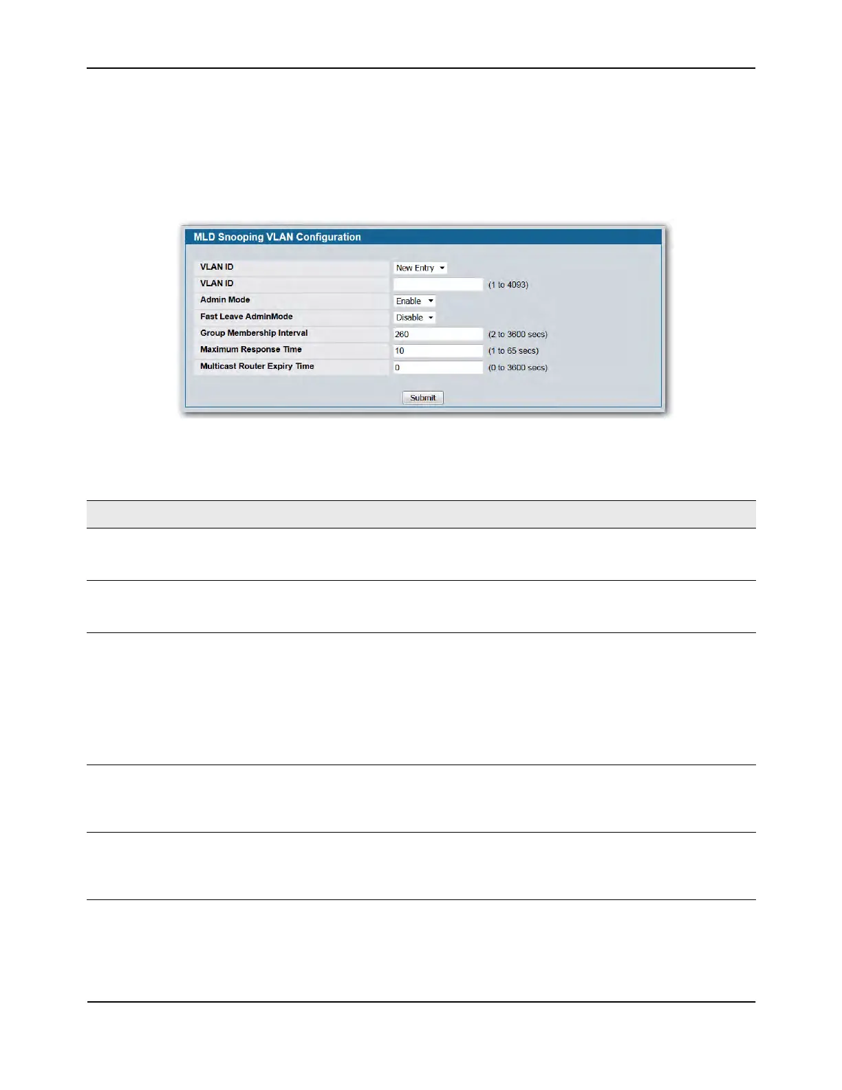 Table 118: MLD Snooping VLAN Configuration Fields