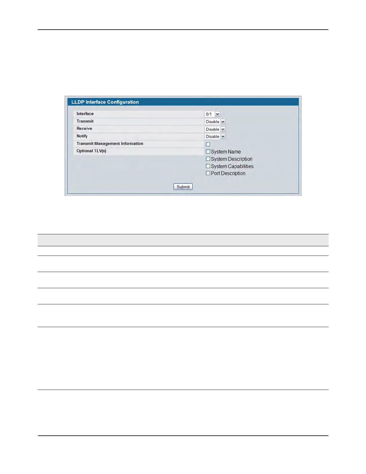 Use the LLDP Interface Configuration page to specify LLDP parameters that are applied to a specific interface.
