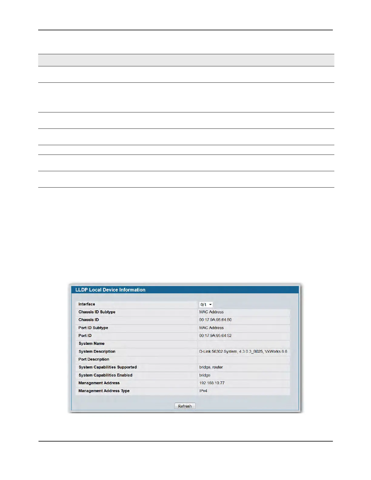 To display the LLDP Local Device Information page, click LAN > Monitoring > LLDP Status > Local Device