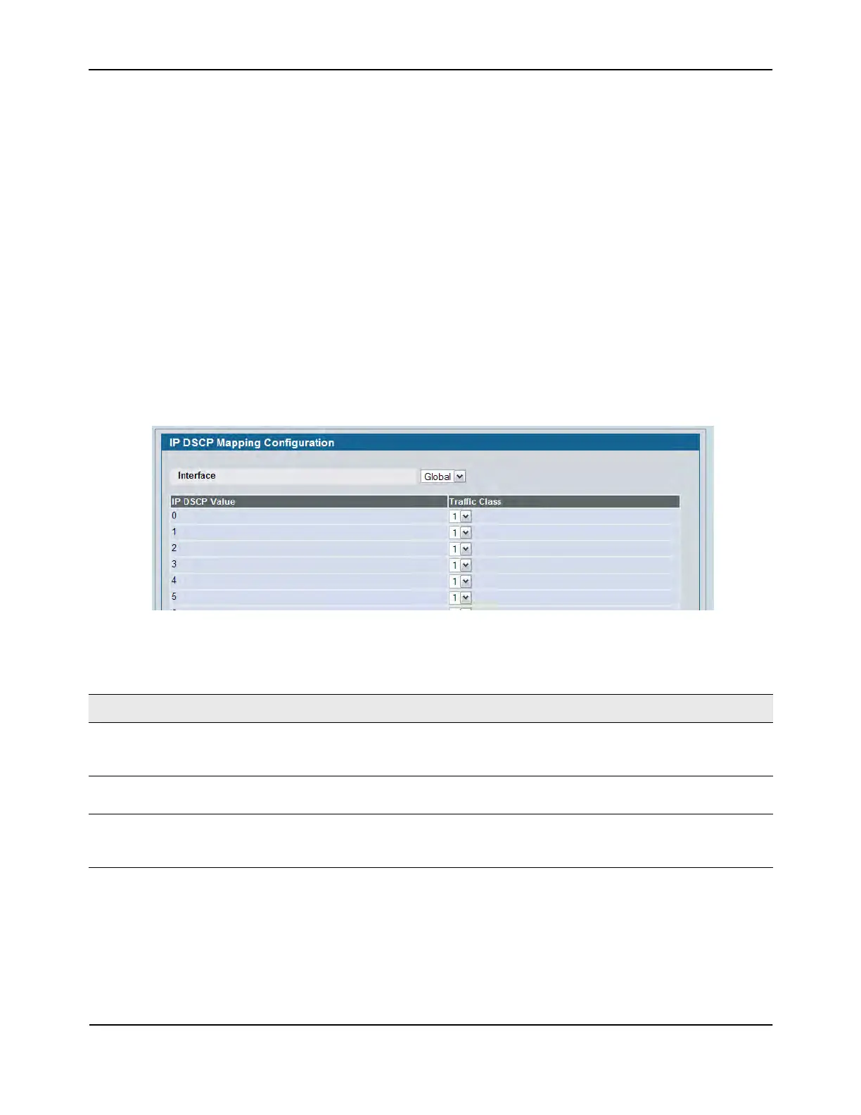 Use the IP DSCP Mapping Configuration page to map an IP DSCP value to an internal traffic class.