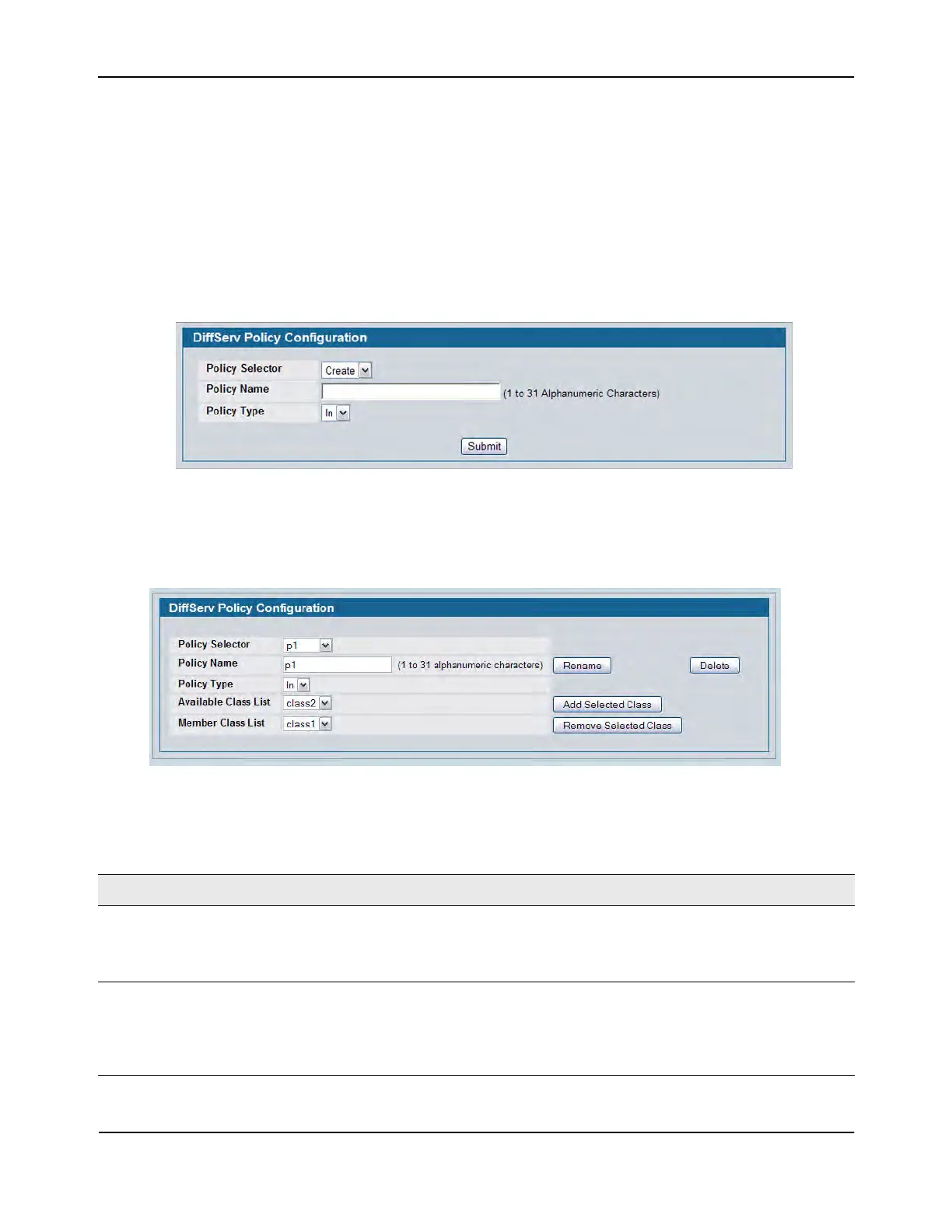 To display the page, click LAN > QoS > Differentiated Services > Policy Configuration in the navigation menu.