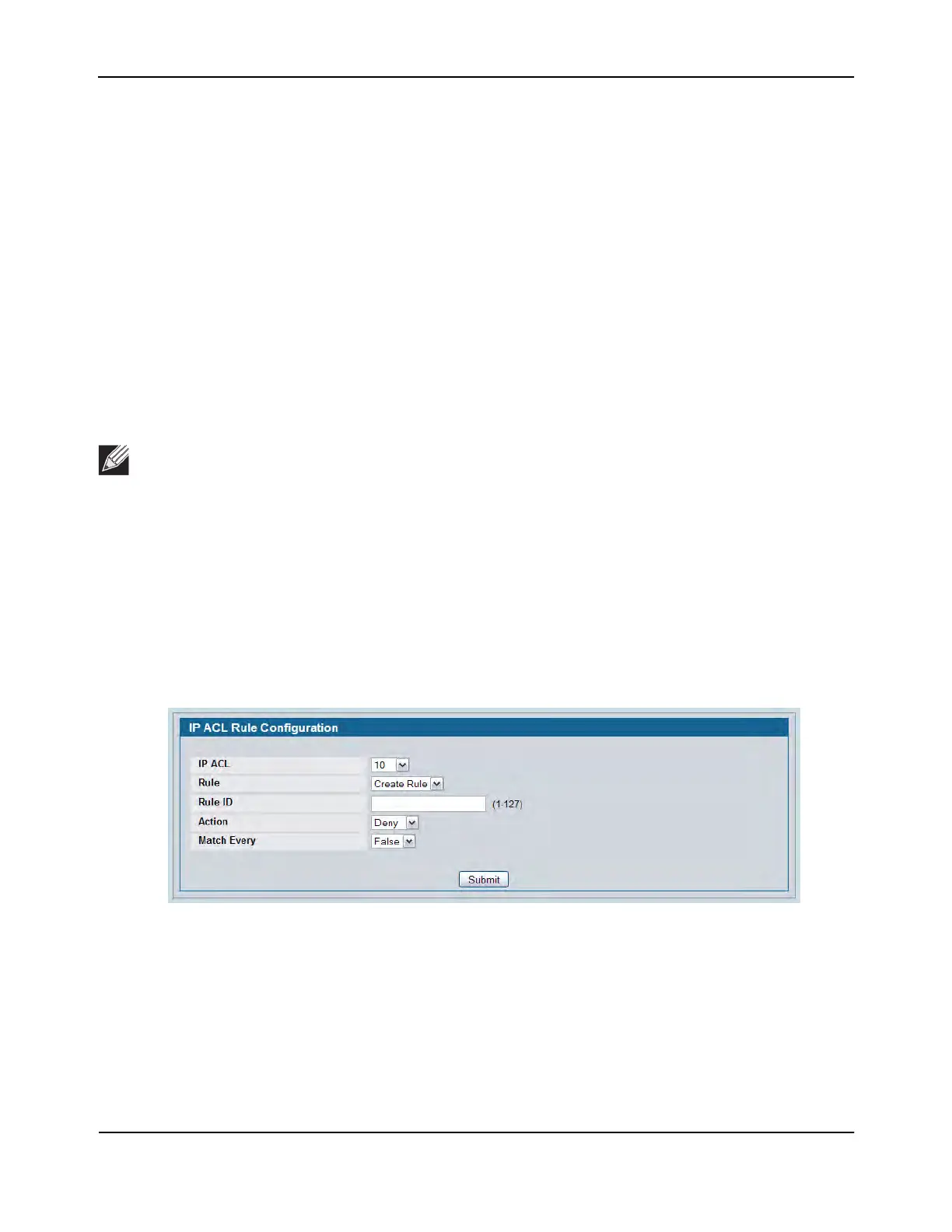 Use the IP ACL Rule Configuration page to define rules for IP-based ACLs created using the IP Access Control