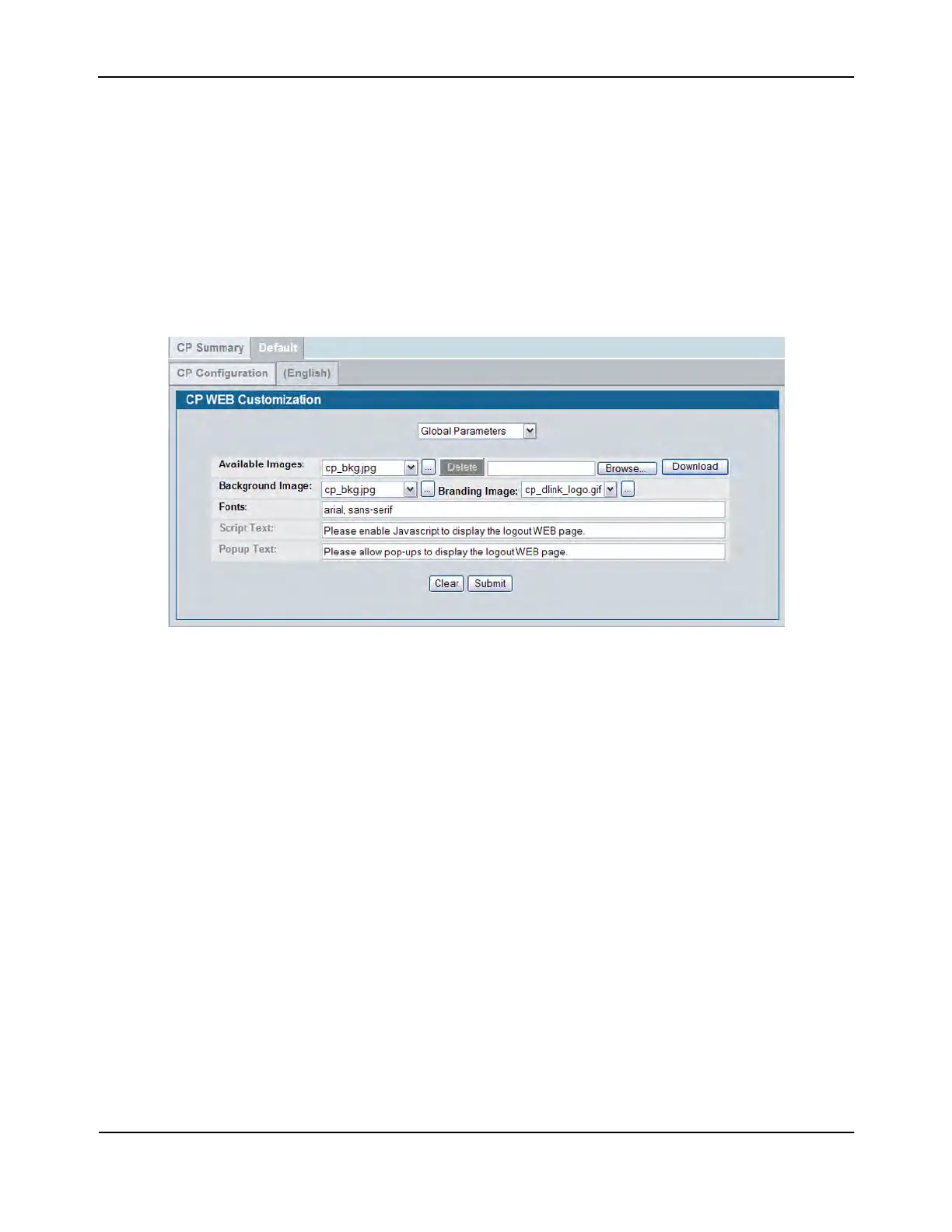 Figure 262: CP Web Page Customization — Global Parameters