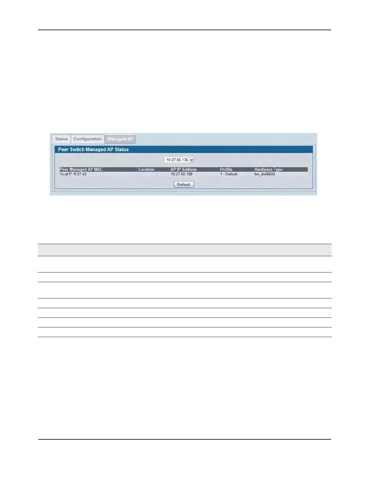 Table 267 describes the fields available on the Peer Switch Managed AP Status page.